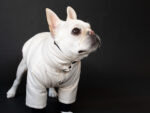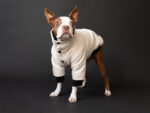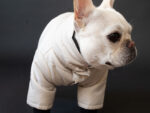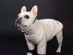 ※モデル犬(フレブル)は小さい体格のためレギュラーサイズを着用しています。実際のFBサイズは首丈は短めにお作りしています。