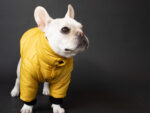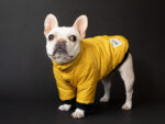※モデル犬(フレブル)は小さい体格のためレギュラーサイズを着用しています。実際のFBサイズは首丈は短めにお作りしています。