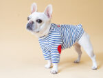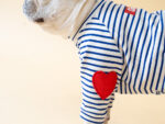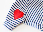 爽やかなボーダーに、ハートパッチワッペンが刺繍され